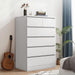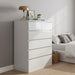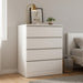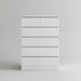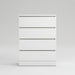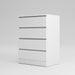 Komoda je izrađena od kvalitetnog MDF materijala, što osigurava dugotrajnost i stabilnost. Površina je glatka, otporna i laka za održavanje – dovoljno ju je povremeno obrisati suvom ili blago vlažnom krpom. Mat bijela boja doprinosi svežini prostora i lako se uklapa uz različite stilove nameštaja.